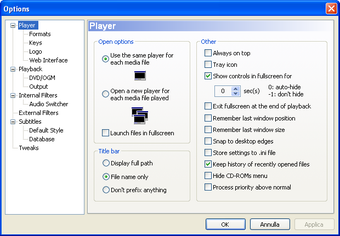Media Player Classic è specialmente orientato per la riproduzione di file DivX, ma è noto per l’estrema facilità con cui riproduce una lista quasi infinita di formati video, audio e grafici. Inoltre, il player supporta i sottotitoli per video AVI, i formati DVD, Flash, QuickTime e RealVideo (purché tu abbia i relativi codec installati sul tuo computer).
